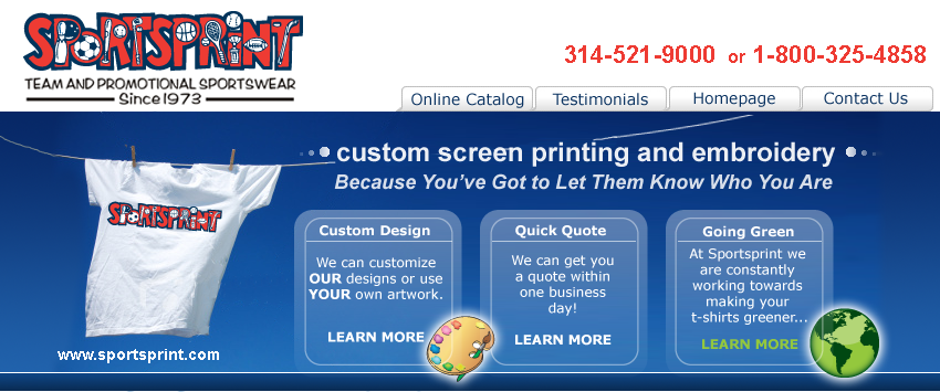 Let our knowledgeable and friendly staff assist you with all of your custom design, screen printing, and embroidery needs, from the ball field to the board room. We'll help you select a high quality product, create custom artwork, and ensure our work meets your specifications. We provide guaranteed quality, competitive pricing, and superior customer service. Please follow the link below to a catalog of our most sought-after items. Or call 314-521-9000 and ask for a Sales Representative – we’re always happy to help you! |